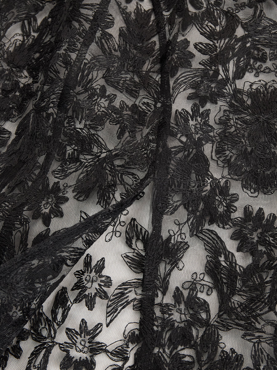 • Fit: Slim-fit bodice with defined waist, flared lace skirt for added movement